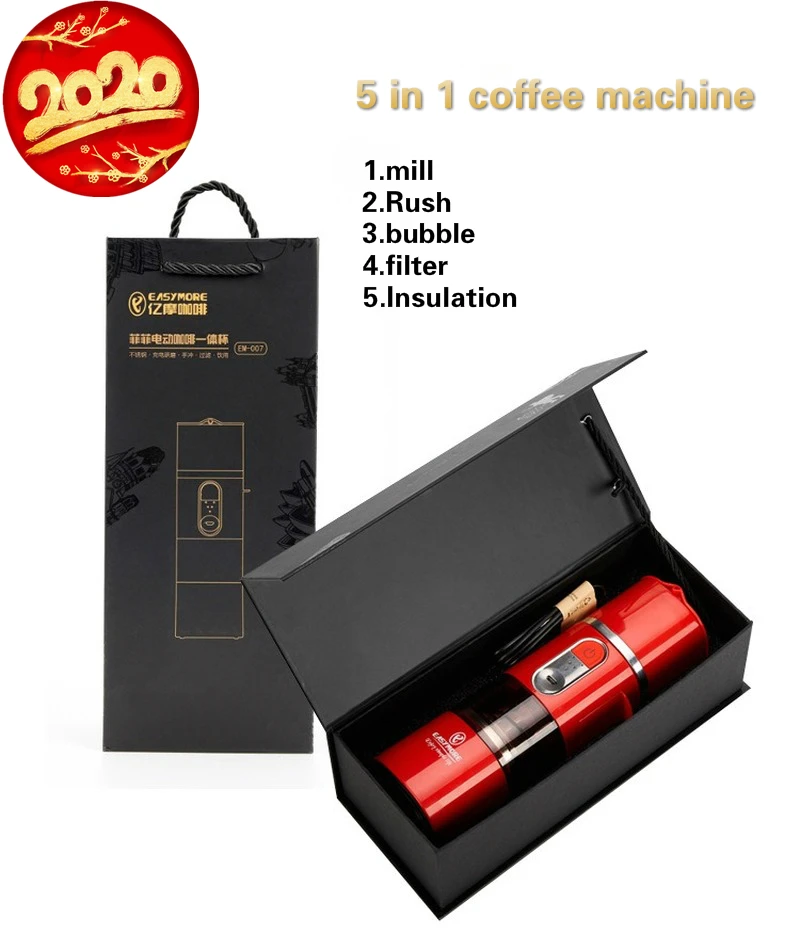 | 2020 new 5 in 1 function electric portable travel office coffee machine grinder grinder charging coffee machine coffee travel |